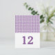 Sencilla pero elegante Houndstoth Table Number Postcard con un fondo moderno de patas traseras moradas y blancas. Fácil de personalizar con los detalles de su boda. Para obtener más opciones de personalización, haga clic en el botón Personalizar.