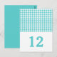 Sencilla pero elegante Houndstoth Table Number Postcard con un fondo turquesa de moda y de patas blancas. Fácil de personalizar con los detalles de su boda. Para obtener más opciones de personalización, haga clic en el botón Personalizar.
