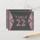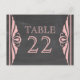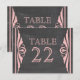 Elegante y moda Deco Chalkboard Número de postal con una textura a la moda en el fondo de la pizarra y un par de bordes de remolinos color rosa claro. Esta preciosa tarjeta de mesa es perfecta para un boda temático Art Deco de los años 20. Fácil de personalizar, simplemente agregue los números de tabla apropiados en el campo de texto proporcionado. Haga clic en "Personalizar" para buscar opciones de personalización adicionales.