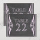 Elegante y moda Deco Chalkboard Número de postal con una textura a la moda de pizarra y un par de bordes de remolinos de lavanda art deco. Esta preciosa tarjeta de mesa es perfecta para un boda temático Art Deco de los años 20. Fácil de personalizar, simplemente agregue los números de tabla apropiados en el campo de texto proporcionado. Haga clic en "Personalizar" para buscar opciones de personalización adicionales.