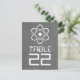 Tarjeta postal con un sencillo símbolo atómico en blanco sobre el fondo de una pizarra. ¡Esta tarjeta de mesa es muy divertida y perfecta para una pareja de entusiastas de la ciencia! Fácil de personalizar, simplemente agregue los números de tabla apropiados en el espacio proporcionado. Haga clic en "Personalizar" para encontrar más opciones de personalización.