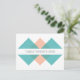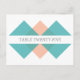 Postal con número de tabla de Boda geométrico moderno y de moda con un diseño triangular elegante en color turquesa y naranja. De fácil personalizar, este diseño sencillo pero elegante se puede personalizar añadiendo los números de tabla correspondientes en el campo de texto proporcionado. Haga clic en "Personalizar" para encontrar más opciones de personalización.