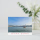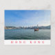 Una hermosa vista del horizonte de Hong Kong y un barco impreso en una postal.
