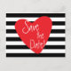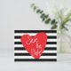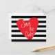 Tarjeta Postal Corazón Rojo Blanco Negro Rayado. Personalice con cualquier texto para cualquier evento.