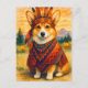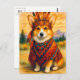 Cute Corgi American Indian Summer Pumpkin Pie Bruja Feliz Día de Acción de Gracias deja luz Halloween otoño postal otoño para post-cruce