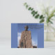 Una tarjeta postal con una foto de un monumento a Abe Lincoln ubicado en Wyoming y con la cita de Lincoln "Asegúrate de poner los pies en el lugar correcto. Luego mantente firme."