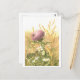 Esta tarjeta postal presenta una ilustración botánica vintage de un cardo en un campo/prado, con una abeja sentada encima.
