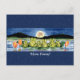 Esta tarjeta postal de arte tiene un dorso en blanco para múltiples usos u ocasiones. La parte delantera presenta mi obra de arte original panorámica y con derechos de autor de acuarela de ranas verdes lindas que miran la rana en la luna, titulada "Ranas de la luna". Arte y diseño caprichoso y único de Tuzi Williams. Inspirado en mi libro infantil ilustrado, "¿Quién está en la luna?" de Tuzi Williams.