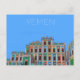 Envía esta hermosa tarjeta postal a tus seres queridos mostrando la pintura decorativa y las bandas ornamentales del Palacio de ladrillos de barro de Buqshan en el sur de Yemen.
