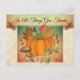 ¡Personaliza esta Única Tarjeta Postal de Acción de Gracias "Única en su Tipo"! Cuenta con una Hermosa Calabaza Naranja Rodeada de Hojas de Otoño en Tonos de Naranja Claro, Naranja Oscuro, Verde con Bayas Naranjas y Hongos Marrones y las Palabras Inspiradoras... "¡Agradezcan en Todas las Cosas"!
