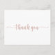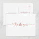 Esta tarjeta postal de agradecimiento con caligrafía en dorado rosado es perfecta para una boda sencilla. El diseño simple y elegante presenta tipografía clásica y elegante en dorado rosado y blanco. Personalice la parte posterior de la tarjeta postal, incluyendo sus nombres, dirección de devolución y un mensaje de agradecimiento. O, deje la sección del mensaje de agradecimiento en blanco para escribir algunas palabras en cada tarjeta después de que lleguen. Estas tarjetas se pueden utilizar para una boda, una despedida de soltera o en cualquier momento en que desee decir gracias.