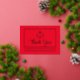 Simple, elegante y moderno "Agradecimiento" de graduación o profesional del derecho en rojo con lámina de oro real en la parte frontal, balanza de la justicia y texto con marco rectangular y doble línea inferior, y diseño de tarjeta postal de texto negro en la parte posterior con plantilla para la dirección de devolución. Diseño original de Holiday Hearts Designs (todos los derechos reservados).