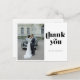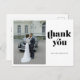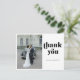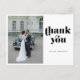 Tarjeta de agradecimiento de boda con diseño retro simple y elegante. Cuenta con las palabras 'gracias' en una fuente hermosa en la parte derecha de la tarjeta. Versión clásica en blanco y negro, puede cambiar el color del texto o dejarlo como está. Personalice con su propia foto de boda y agregue su mensaje en el reverso para crear una tarjeta de agradecimiento que sus invitados apreciarán. Por favor, explore la Suite de Tarjetas de Agradecimiento de Boda para una selección de otros diseños.