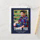 Tarjeta postal de agradecimiento de graduación con foto de borde azul.