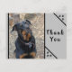 Esta encantadora tarjeta postal muestra una fotografía de nuestra Rottweiler, Heidi. Heidi mira cariñosamente a tus ojos mientras inclina la cabeza hacia un lado de la manera más linda. Esta tarjeta postal es perfecta para todo amante de los perros. Las palabras en esta tarjeta postal dicen "Gracias" pero se pueden cambiar fácilmente a tu propio mensaje.
