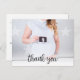 Esta tarjeta postal de agradecimiento con foto completa es perfecta para las notas de agradecimiento de su baby shower o boda. Cuenta con una superposición blanca y "gracias" en una secuencia de comandos florida en la parte delantera, y su foto favorita. La parte posterior incluye su mensaje personalizado o se puede dejar en blanco para escribir a mano sus sentimientos. Utilice el formulario de plantilla para agregar su propio texto. La función de personalización se puede utilizar para cambiar la fuente y mover el texto.