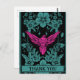 Exótico pájaro rosa, flores azul oscuro, tarjeta postal de agradecimiento gótica. Editable.