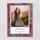 Expresa tu gratitud de manera hermosa con nuestra "Tarjeta postal de agradecimiento floral romántico con foto personalizada". Esta elegante tarjeta presenta un hermoso diseño rosa adornado con acentos florales románticos, lo que te permite mostrar tu foto favorita de tu día especial. Elaborada con cartulina de alta calidad, ofrece un tacto lujoso y brinda un amplio espacio para tu mensaje sincero. Perfecta para agradecer a tus invitados, esta tarjeta de agradecimiento personalizada añade un toque encantador que atesorarán mucho después de tu boda.