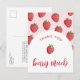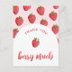 Celebre la alegría de los nuevos comienzos con nuestras encantadoras tarjetas de agradecimiento "Thank You Berry Much" (Muchas gracias) de la fiesta de bebé de dulce fresa, con un delicioso patrón de fresas en tonos de rojo suave combinados con un arco y una tipografía de letra script moderna. Estas adorables tarjetas de agradecimiento de la ducha de bebé con fresas son la opción ideal para expresar su gratitud con estilo y coinciden con el tema de dulzura de su fiesta de bebé.