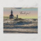 Tarjeta postal de agradecimiento que presenta una foto de medios mixtos de olas furiosas que chocan a lo largo de los faros interiores y exteriores del muelle norte de St Joseph en St Joseph, Michigan, Estados Unidos.