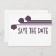 Moderna y sofisticada tarjeta postal de ahorro con deco chic simple en morado que presenta un par de adornos circulares art déco elegantes. Esta elegante tarjeta postal de ahorro es perfecta para anunciar su boda elegante inspirada en art déco. Fácil de personalizar, simplemente agregue los detalles de su boda en los campos proporcionados. Haga clic en el botón "Personalizar" para encontrar opciones adicionales de personalización.