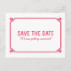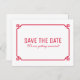 Tarjeta postal de ahorro con estilo Deco simple y minimalista con un borde ornamental art déco rojo moderno. Esta tarjeta postal de ahorro clásica y elegante es fácil de personalizar con los detalles de su boda. Encuentre más opciones de personalización haciendo clic en Personalizar.