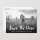 Tarjeta postal de ahorro de boda con foto rústica con una foto de sangrado completo y una fuente de letra rústica. Personalice fácilmente esta tarjeta postal de ahorro de boda con su foto y detalles de la boda.
