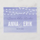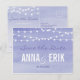 El diseño de la boda Luces de Cuerda de Acuarela fue creado por Aubergine y Purple. Este diseño moderno incluye una cuerda de luces con un hermoso fondo de acuarela lavanda púrpura.