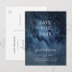 Esta tarjeta postal de ahorro de fecha de cielo nocturno celestial plateado es perfecta para tu boda encantada bajo las estrellas. El cielo de acuarela azul marino oscuro, salpicado de estrellas plateadas, marcará el tono para tu boda boho al aire libre por la noche. Personalízala como desees o déjala tal como está. Asegúrate de revisar el resto de la colección para ayudar a completar el tema de tu boda.