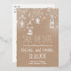 Tarjeta postal de ahorro de fecha de linternas de papel de aluminio plateado rústico de invierno.