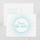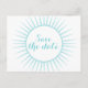Tarjeta postal de ahorro de fecha retro Deco sofisticada y elegante en turquesa con un diseño de ráfaga de sol ornamental circular art déco. Fácil de personalizar, simplemente agregue los detalles de su boda en los campos de texto proporcionados. Haga clic en "Personalizar" para encontrar más opciones de personalización.