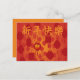 Siluetas rojas y naranjas de varios farolillos chinos como fondo con grandes ideogramas chinos de corte "Feliz Año Nuevo" por el color de tu elección + Feliz Año Nuevo en inglés + un pequeño papel naranja cortado de un buey en una linterna roja, puedes borrar esta pequeña imagen si quieres usar el diseño para todos los años nuevos chinos. Diseño en postal horizontal. Tarjeta de saludo coincidente.