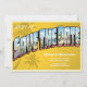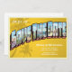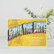 Esta tarjeta postal de guardar la fecha es ideal para una boda en un destino de playa. El diseño está basado en antiguas tarjetas postales de vacaciones de estilo retro vintage. Es totalmente personalizable, por lo que se puede utilizar para una ceremonia de boda celebrada en cualquier ubicación de playa popular. Una forma divertida y casual de anunciar tu gran día a amigos y familiares. Las tarjetas de "guardar la fecha" son especialmente importantes para bodas en destinos lejanos. Asegúrate de enviar las tuyas con cuatro a seis meses de antelación para que los invitados puedan planificar con anticipación y reservar vuelos. Algunos destinos populares de bodas en la playa incluyen Hawái, Aruba, México, Jamaica, las Bahamas, el Caribe y las Islas Vírgenes.
