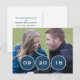 Elegante y moderna Tarjeta Postal de Anuncio de Boda con Círculos que presenta tres círculos oscuros azules en los que puedes agregar la fecha de tu boda. Este diseño elegante es fácil de personalizar con tu propia foto y los detalles de tu boda. ¡Haz clic en el botón "Personalízalo" para jugar con las fuentes o los colores del texto!