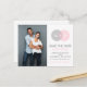 Tarjeta postal de anuncio de boda con monograma en círculo entrelazado rosa y gris