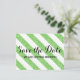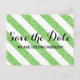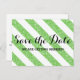 Elegante y moderna tarjeta postal de anuncio de boda con rayas de brillo verde con un patrón de rayas con brillo falso. Fácil de personalizar con los detalles de tu boda. Para más opciones de personalización, haz clic en el botón Personalizar. //NO ES BRILLO REAL - IMAGEN PLANA IMPRESA CON ARTE DIGITAL//