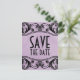 Elegante y chic tarjeta postal de anuncio de boda con remolinos vintage que presenta un fondo de lavanda texturizado falso desgastado y bordes con florituras en remolino. Este diseño con aspecto antiguo es perfecto para anunciar una boda con tema vintage. Fácil de personalizar, simplemente agregue los detalles de su boda en los campos de texto proporcionados. Haga clic en "Personalizar" para encontrar más opciones de personalización.