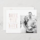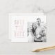 Una tarjeta de anuncio de boda simple y moderna con acentos clásicos en negro, blanco y falso rosado la hace destacar de tu foto de compromiso y envía a tus invitados la información que necesitan para planificar con anticipación tu celebración de boda con un monograma chic de la pareja dentro de anillos de boda entrelazados. ¡El texto fácil de personalizar hace que esta tarjeta postal sea una elección inteligente!