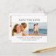 Un diseño moderno y fresco muestra tres de tus fotografías. Dos fotos más pequeñas crean una banda a través del centro de tu tarjeta postal de anuncio de boda. Otra foto se coloca en la parte posterior sobre un mensaje personal. La dirección de devolución se incluye para tu comodidad. El texto de letra serif plana le da a la tarjeta su ambiente moderno y elegante. Todo el texto se puede editar. Plantilla muy fácil de usar.