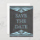 Elegante y chic tarjeta postal de anuncio de boda estilo Deco con pizarra con un fondo de textura de pizarra de moda y un par de bordes de remolino art déco azul claro. Esta encantadora tarjeta postal de anuncio de boda es perfecta para anunciar su boda temática art déco de los años 20. Fácil de personalizar, simplemente agregue los detalles de su boda. Haga clic en "Personalizar" para encontrar opciones de personalización adicionales.