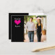 ¿Buscas una tarjeta de anuncio de compromiso divertida y moderna? No busques más, añade tu foto e información a esta tarjeta de anuncio de compromiso. Colores personalizados disponibles a petición. Se muestra en negro con un corazón rosa y texto blanco.