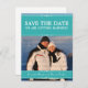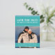 Moderna y elegante Tarjeta postal de aviso de boda Simple Chic con bordes elegantes en turquesa y adornos de estilo deco en blanco. Esta elegante tarjeta postal de aviso de boda es fácil de personalizar con una foto de la feliz pareja y los detalles de la boda. Haga clic en "Personalizar" para encontrar más opciones de personalización.
