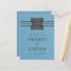 Tarjeta postal de anuncio de boda con borde de medallón elegante y señorial que presenta un medallón metálico de arte digital y un borde de tres franjas sobre un fondo azul claro. Esta tarjeta postal audaz y elegante es perfecta para anunciar su boda igualmente audaz y elegante. Fácil de personalizar, simplemente agregue los detalles de su boda en los campos de texto proporcionados. Haga clic en "Personalizar" para encontrar opciones de personalización adicionales, como cambiar las fuentes o el tamaño del texto.