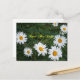 Primer plano de margaritas de verano contra una rueda de metal. Una forma maravillosa de anunciar su día importante.