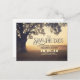 Tarjeta postal de anuncio de fecha de boda especial y única con hermoso y caprichoso árbol antiguo decorado con una cadena de luces. Anuncio de fecha de boda soñado y vintage perfecto para temas de boda rústica en el campo.