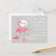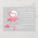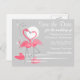Una pareja de flamencos rosados con cuellos curvados formando un corazón se paran en el mar en una playa iluminada por la luna. Un diseño elegante y romántico con toque retro creado en un esquema de color rosa, gris y blanco con un fondo que cambia de color. Un diseño personalizable para que lo personalices con tu propio texto, imágenes e ideas. Una imagen de arte digital original.