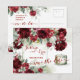 La suite definitiva de invitaciones de boda con acuarela floral. Una botella vintage de suntuosas peonías rojas profundas, entre frondas plateadas de vegetación de acuarela y rociadas de delicada artesanía floral.