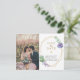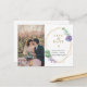 Tarjeta postal de anuncio de fecha con suculentas moradas a la acuarela, marco geométrico dorado y tu foto personalizada. Encuentra artículos relacionados en nuestra tienda o contáctanos.