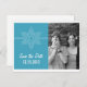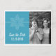 Anuncie su boda con tema navideño o invernal con esta tarjeta postal de anuncio de fecha de boda con foto de Copo de Nieve Dulce. Con un delicado y elegante copo de nieve blanco y una franja delgada sobre un fondo azul sólido, este divertido diseño es fácil de personalizar. Simplemente agregue su propia foto y detalles de la boda en los campos de texto proporcionados o haga clic en "Personalizar" para encontrar más opciones de personalización.