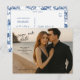 ¿Buscas una forma elegante de anunciar tu boda? Esta tarjeta postal de guardar la fecha con foto personalizable te permite subir tu foto de compromiso favorita mientras mantiene el diseño pulido y moderno. Con una elegante colocación de tipos que se adapta a la ropa más oscura y a entornos de playa, el reverso muestra un patrón atemporal de azul chinoiserie para un acabado clásico. Perfecta para bodas en la costa, parejas modernas o cualquiera que desee un toque refinado y personal.